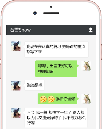 决定学英语后,Snow首先询问了这些朋友,然而朋友们的回答却给了她当头一棒。“跑班上课,你经常出差能接受吗” “我上了半年就停课了,边工作边学习根本就坚持不了,况且,你比我还忙” “每天跟不同老师上课,还没进入状态就差不多下课了,效果也一般”……